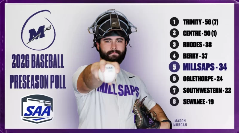 The Millsaps College baseball team was ranked fifth in the 2026 Southern Athletic Association (SAA) Preseason Poll, announced Wednesday. The Majors received 34 points in the voting, coming off a 2025 season in which they won the SAA regular-season championship.