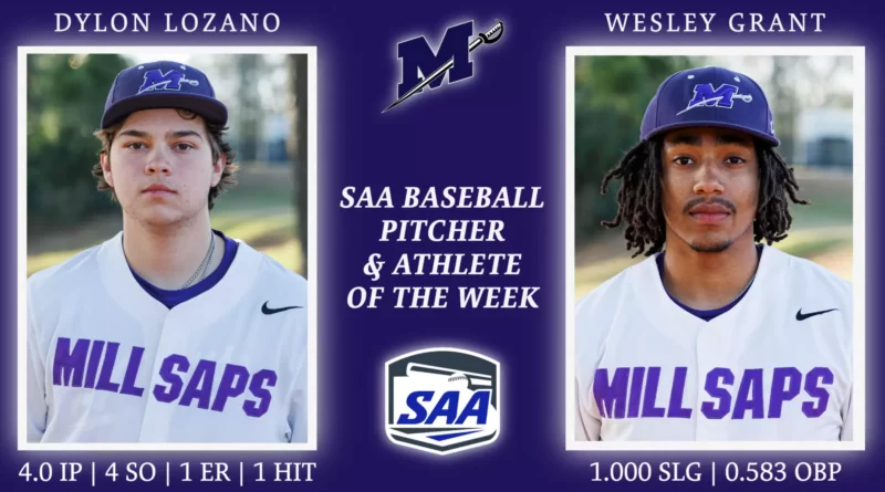 Canton, Georgia — Millsaps College baseball players Dylon Lozano and Wesley Grant received the Southern Athletic Association’s weekly honors on Monday. Lozano was named pitcher of the week, while Grant earned athlete of the week recognition.