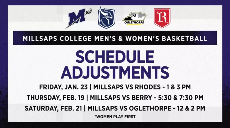 The Millsaps College men’s and women’s basketball programs announced schedule changes for two upcoming home weekends due to anticipated winter weather. The affected games are part of the Southern Athletic Association schedule and have been moved to new dates in late January and February.
