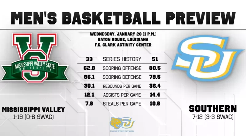Mississippi Valley State enters the game with a 1-19 overall record and is 0-6 in Southwestern Athletic Conference play. Southern holds a 7-12 record and is 3-3 in league play. The Jaguars lead the all-time series 51-33 since 1983, including a seven-game winning streak. Their last victory over Mississippi Valley was on Feb. 18, 2019.