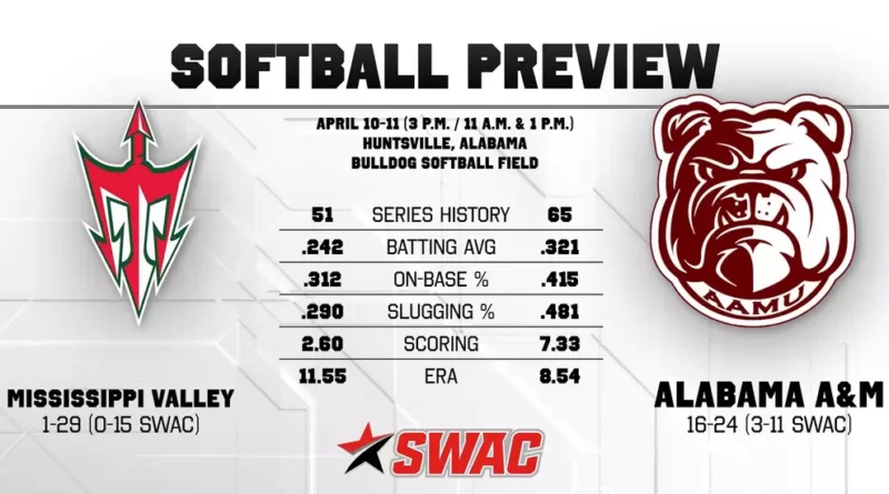 Huntsville, Alabama — The Mississippi Valley State University softball team will try to spoil Alabama A&M’s Senior Weekend during a three-game series at Bulldog Softball Field. The Delta Devils, holding a 1-29 record overall and 0-15 in Southwestern Athletic Conference play, visit the Bulldogs, who are 16-24 and 3-11 in the conference.